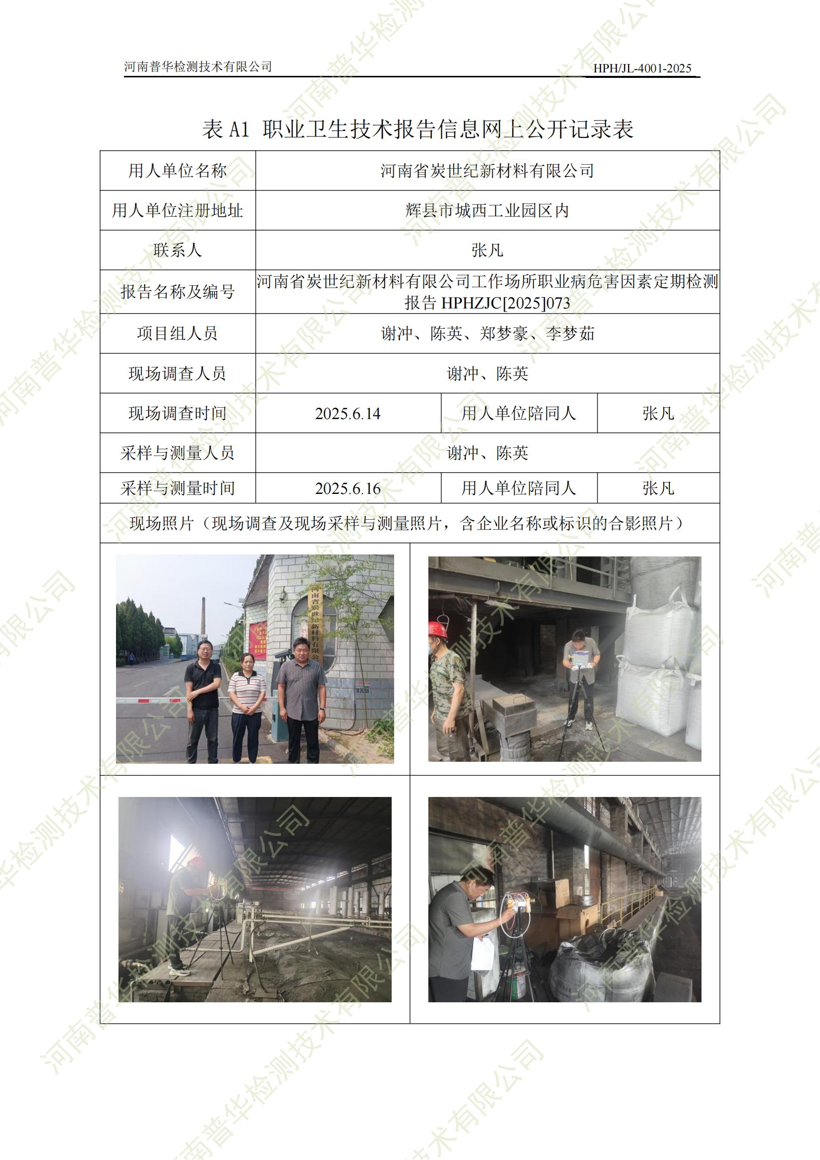 河南省炭世紀(jì)新材料有限公司工作場(chǎng)所職業(yè)病危害因素定期檢測(cè) 點(diǎn)擊次數(shù):76 次