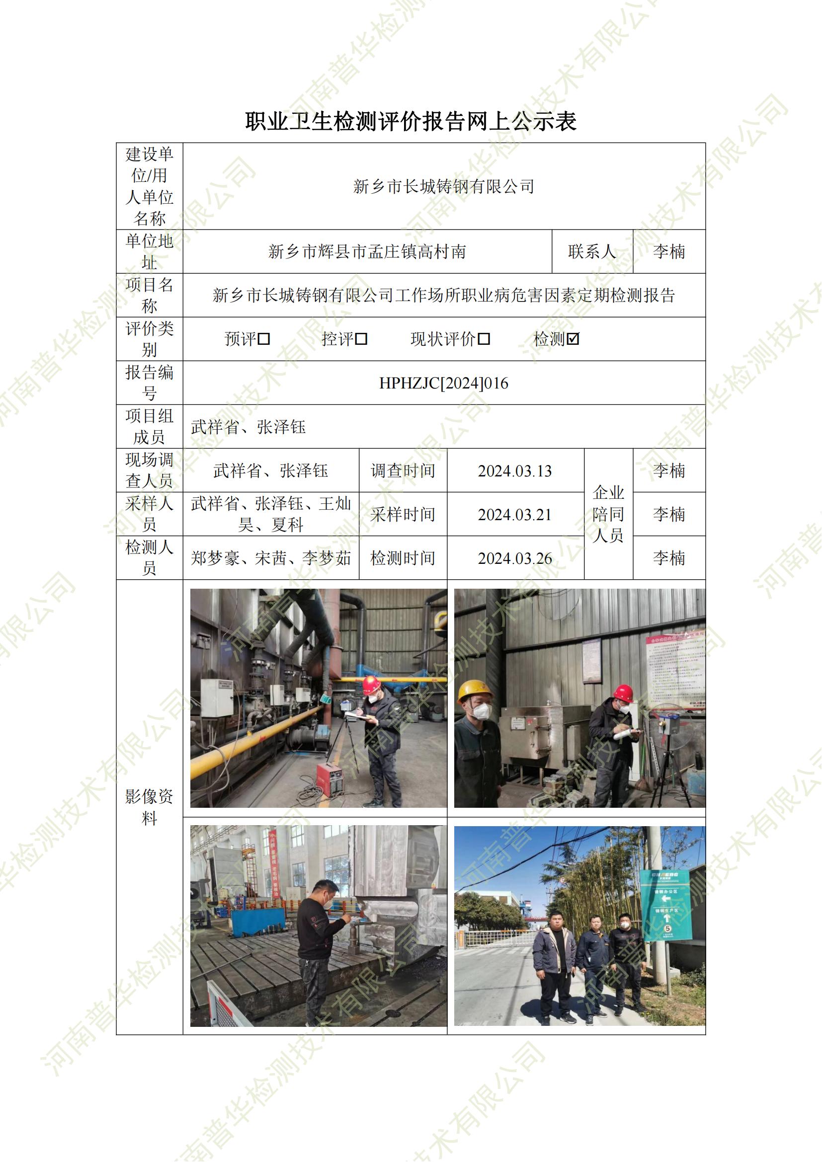 新鄉(xiāng)市長城鑄鋼有限公司工作場所職業(yè)病危害因素定期檢測 點(diǎn)擊次數(shù):924 次