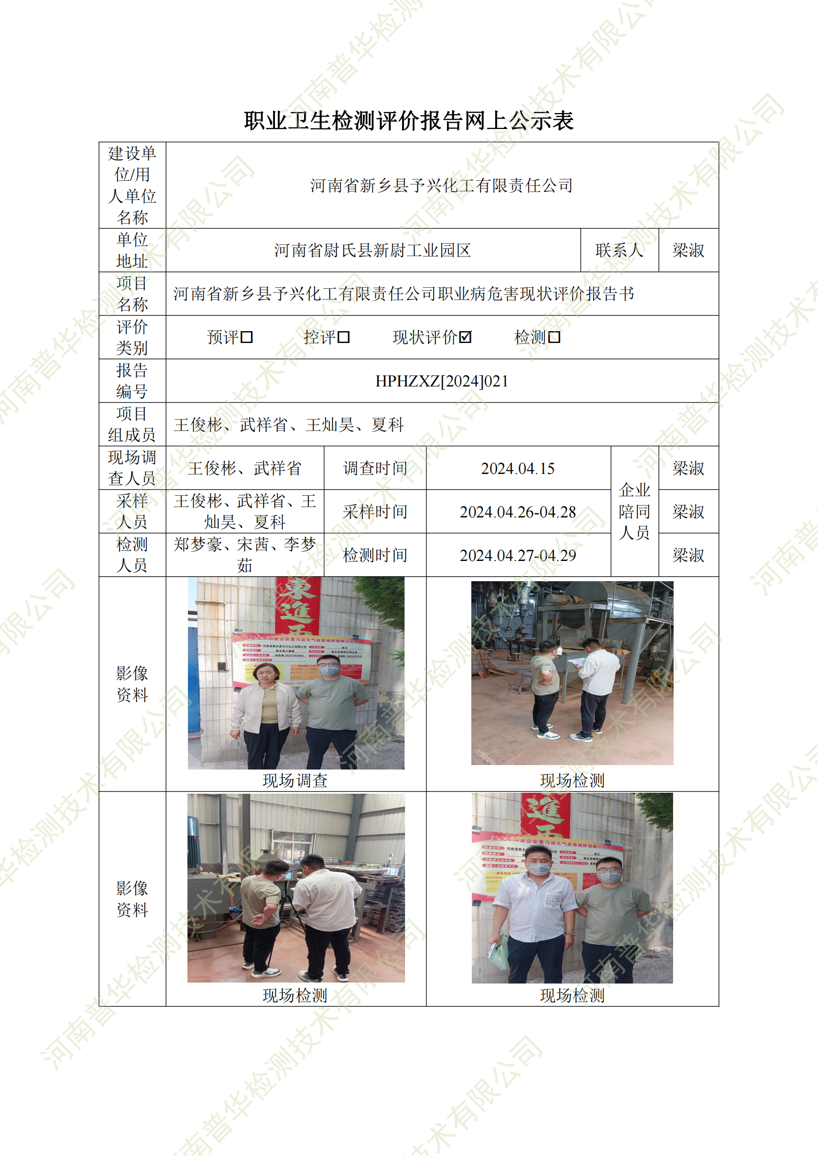 河南省新鄉(xiāng)縣予興化工有限責(zé)任公司職業(yè)病危害現(xiàn)狀評價 點擊次數(shù):945 次