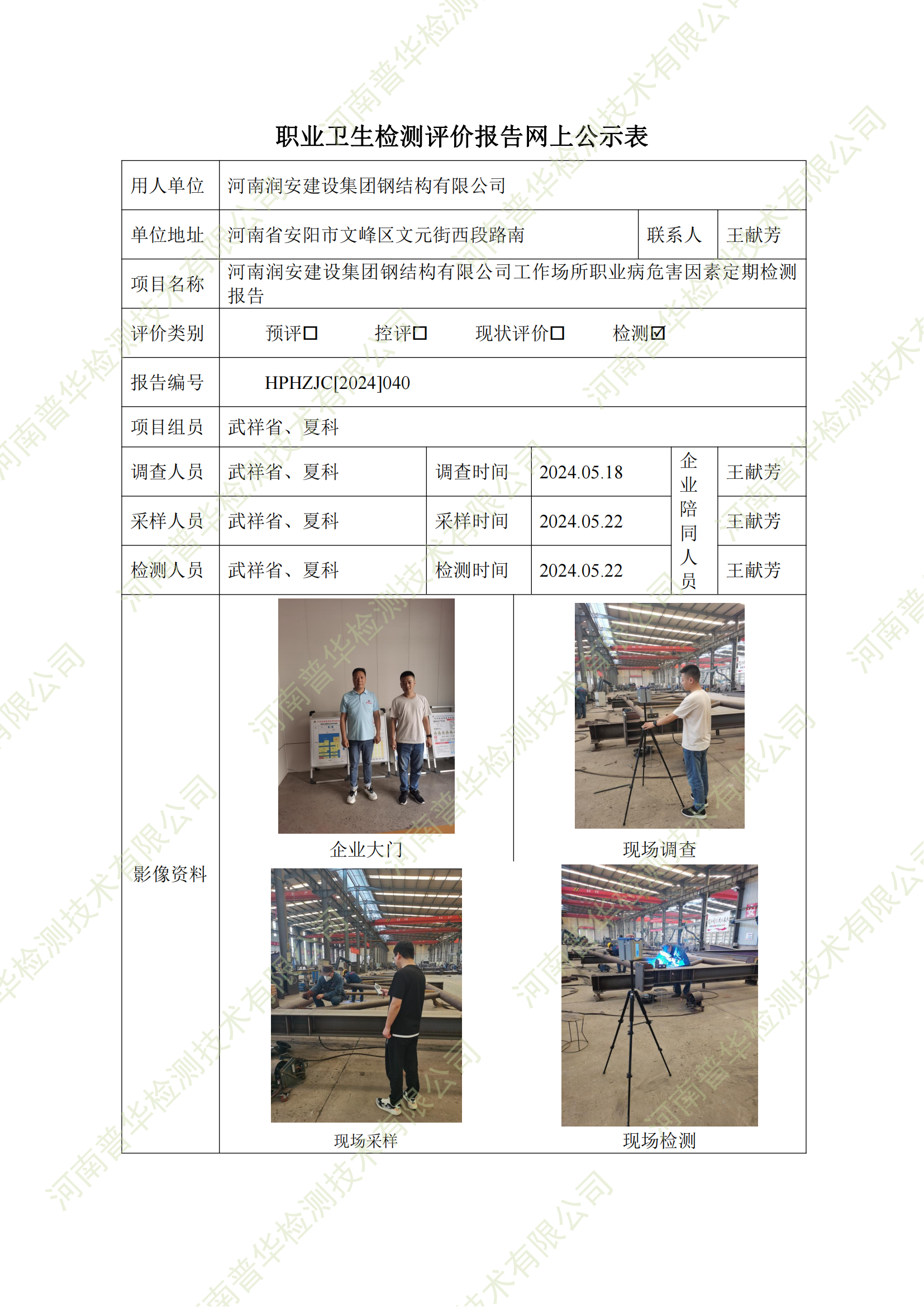 河南潤安建設(shè)集團鋼結(jié)構(gòu)有限公司工作場所職業(yè)病危害因素定期檢測 點擊次數(shù):835 次