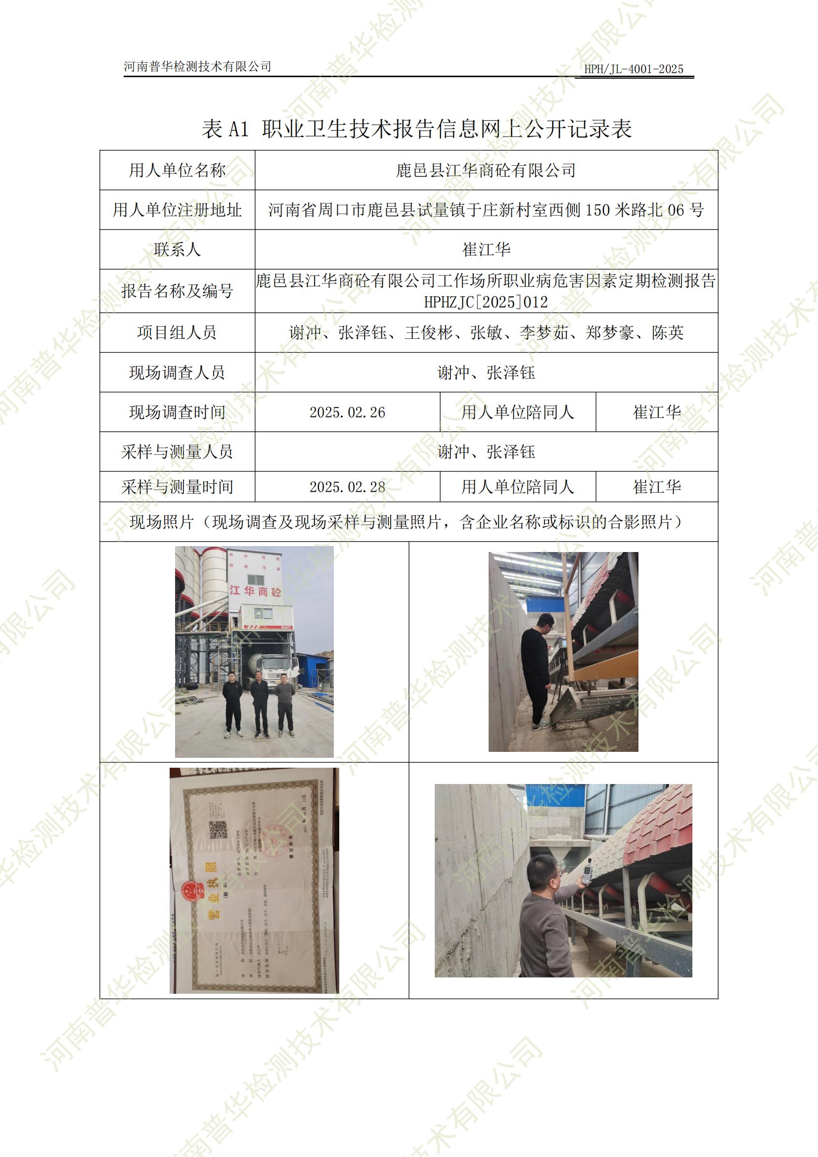 鹿邑縣江華商砼有限公司工作場(chǎng)所職業(yè)病危害因素定期檢測(cè) 點(diǎn)擊次數(shù):343 次