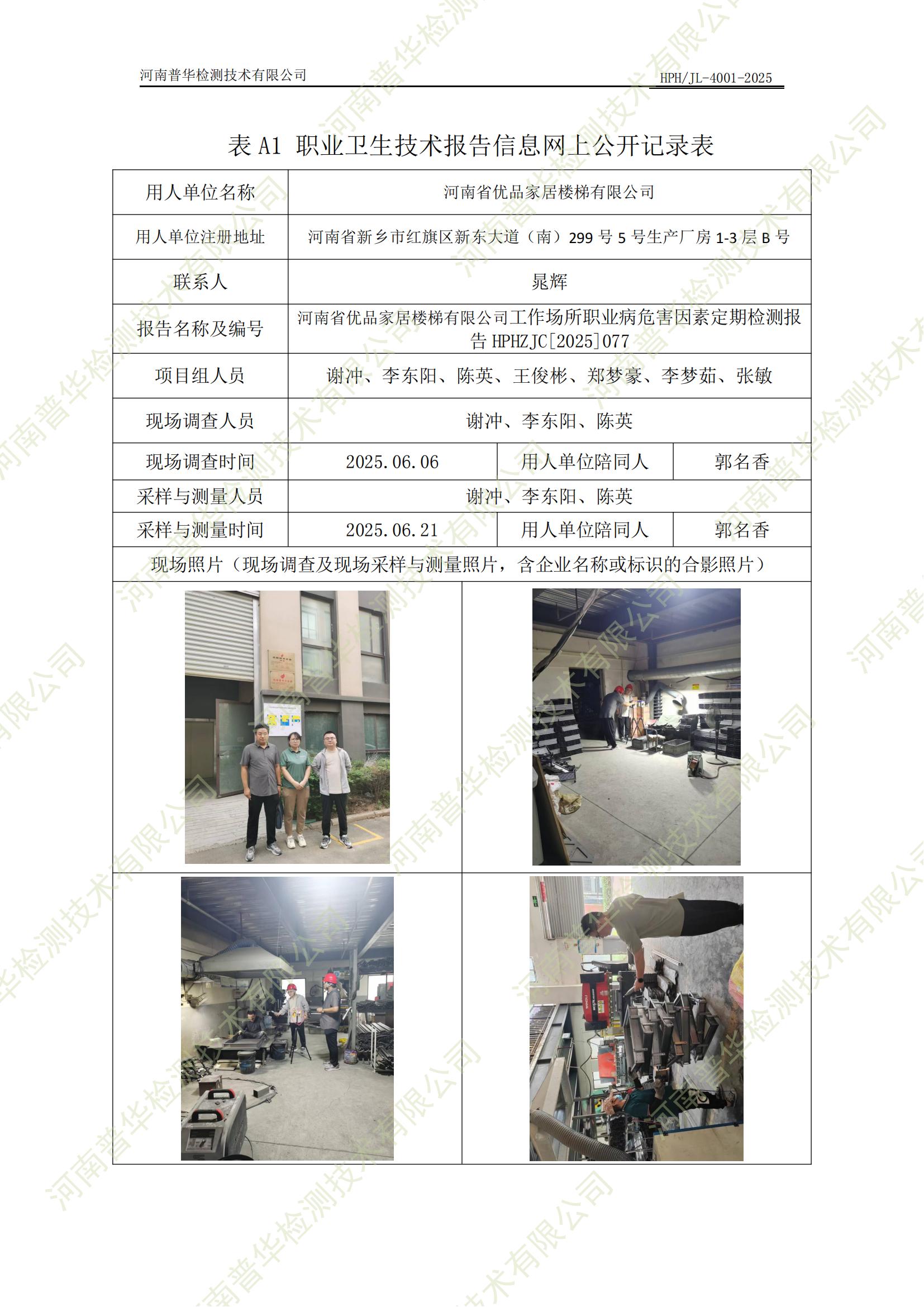 河南省優(yōu)品家居樓梯有限公司工作場(chǎng)所職業(yè)病危害因素定期檢測(cè) 點(diǎn)擊次數(shù):82 次