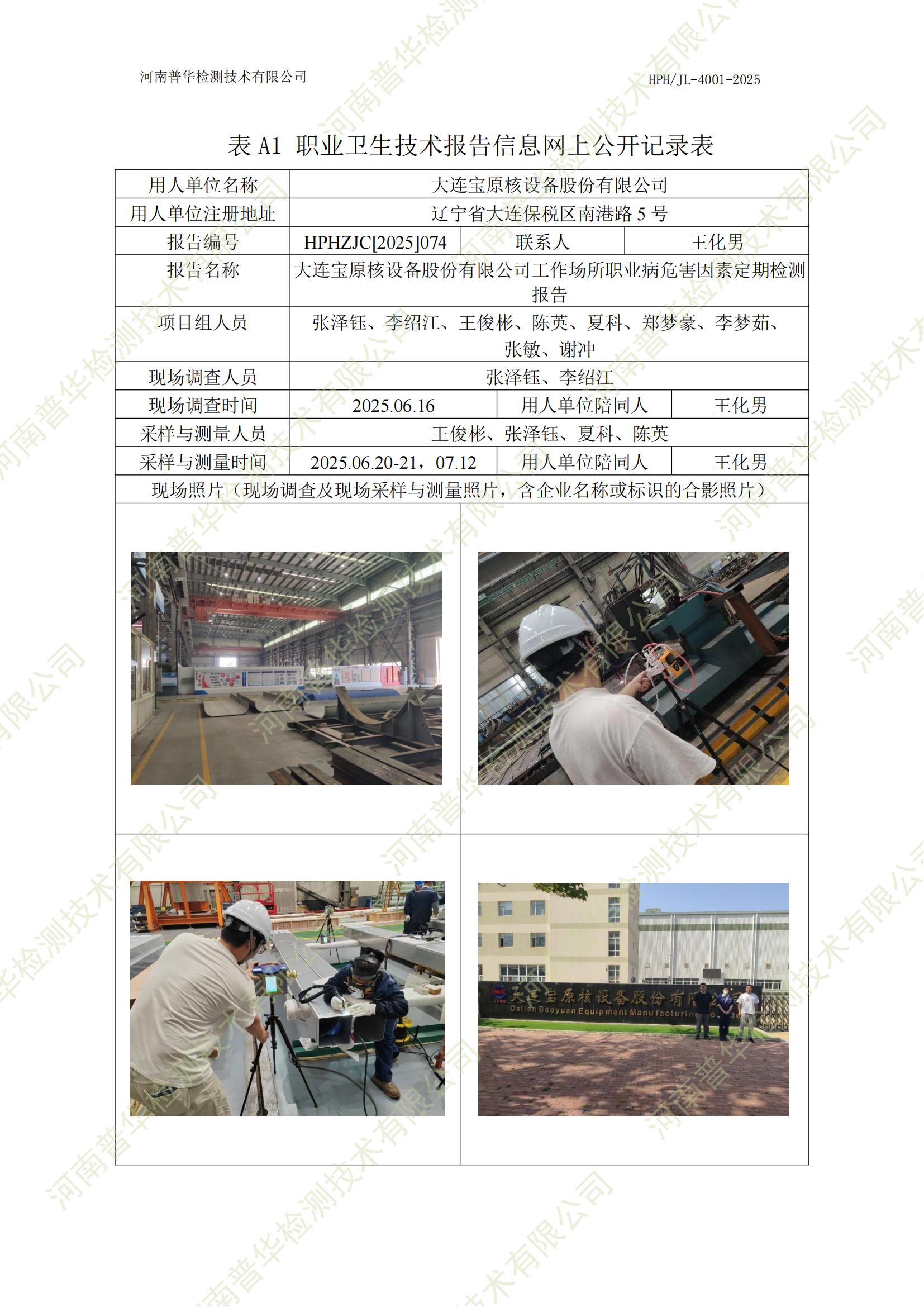 大連寶原核設(shè)備股份有限公司工作場所職業(yè)病危害因素定期檢測 點(diǎn)擊次數(shù):115 次