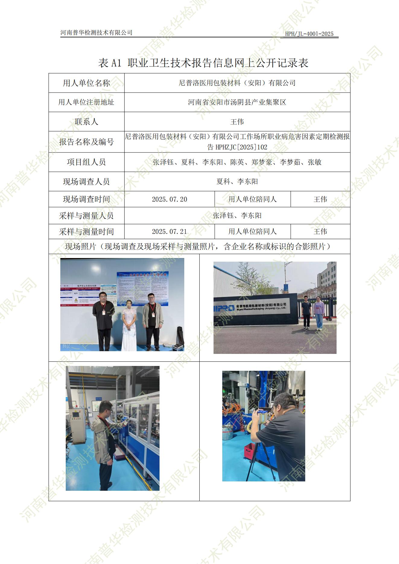 尼普洛醫(yī)用包裝材料(安陽)有限公司工作場所職業(yè)病危害因素定期檢測 點擊次數(shù):63 次