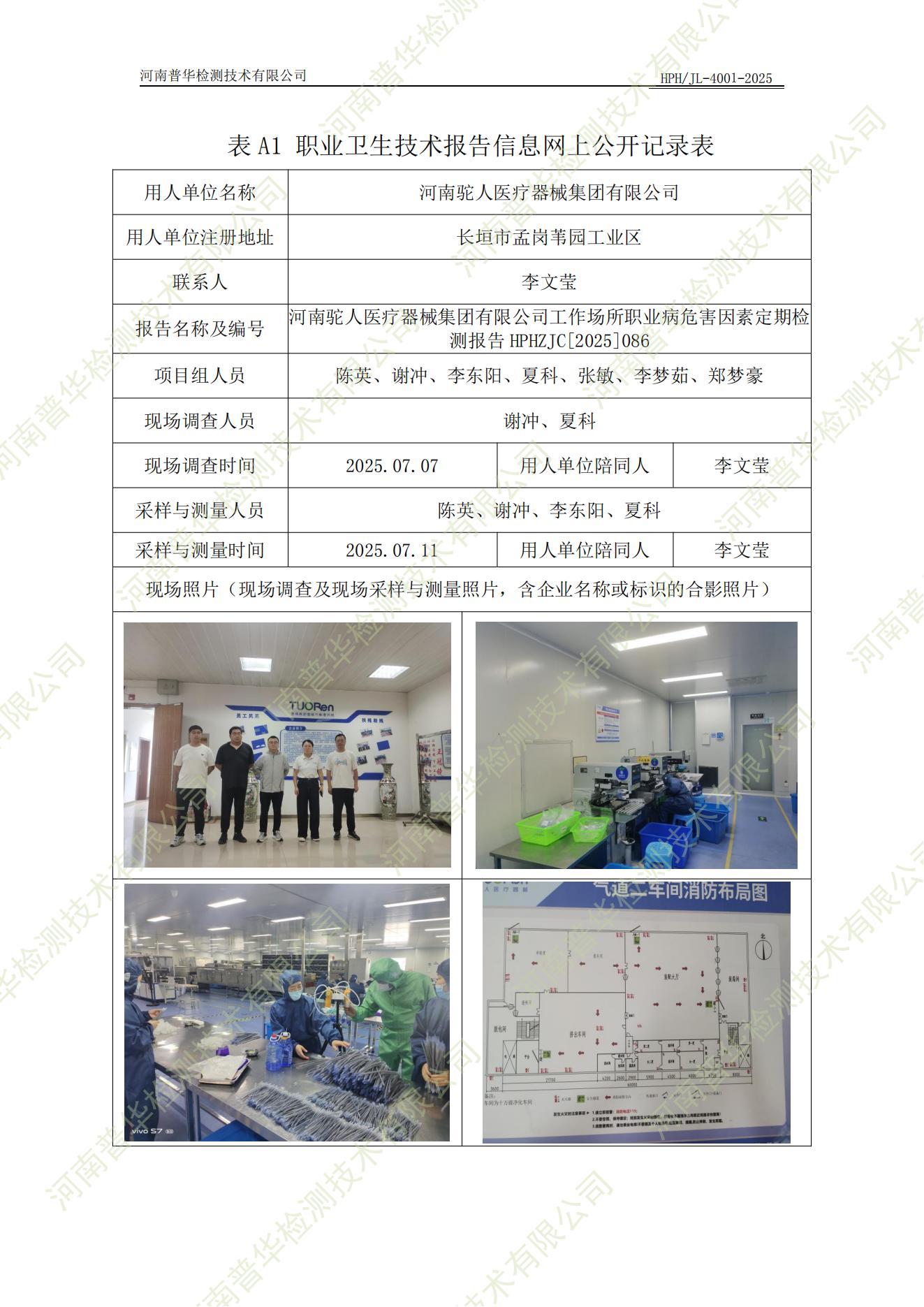 河南駝人醫(yī)療器械集團(tuán)有限公司工作場所職業(yè)病危害因素定期檢測 點擊次數(shù):74 次