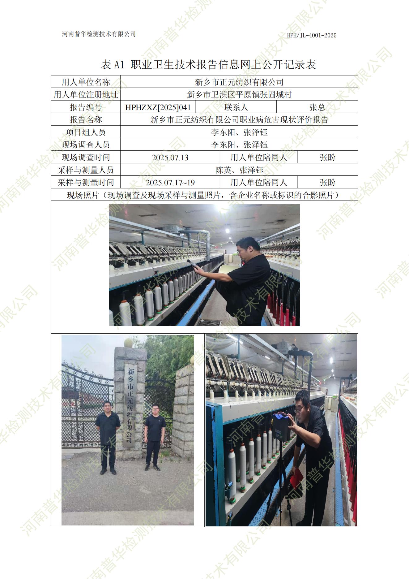 新鄉(xiāng)市正元紡織有限公司職業(yè)病危害現(xiàn)狀評價 點擊次數(shù):68 次