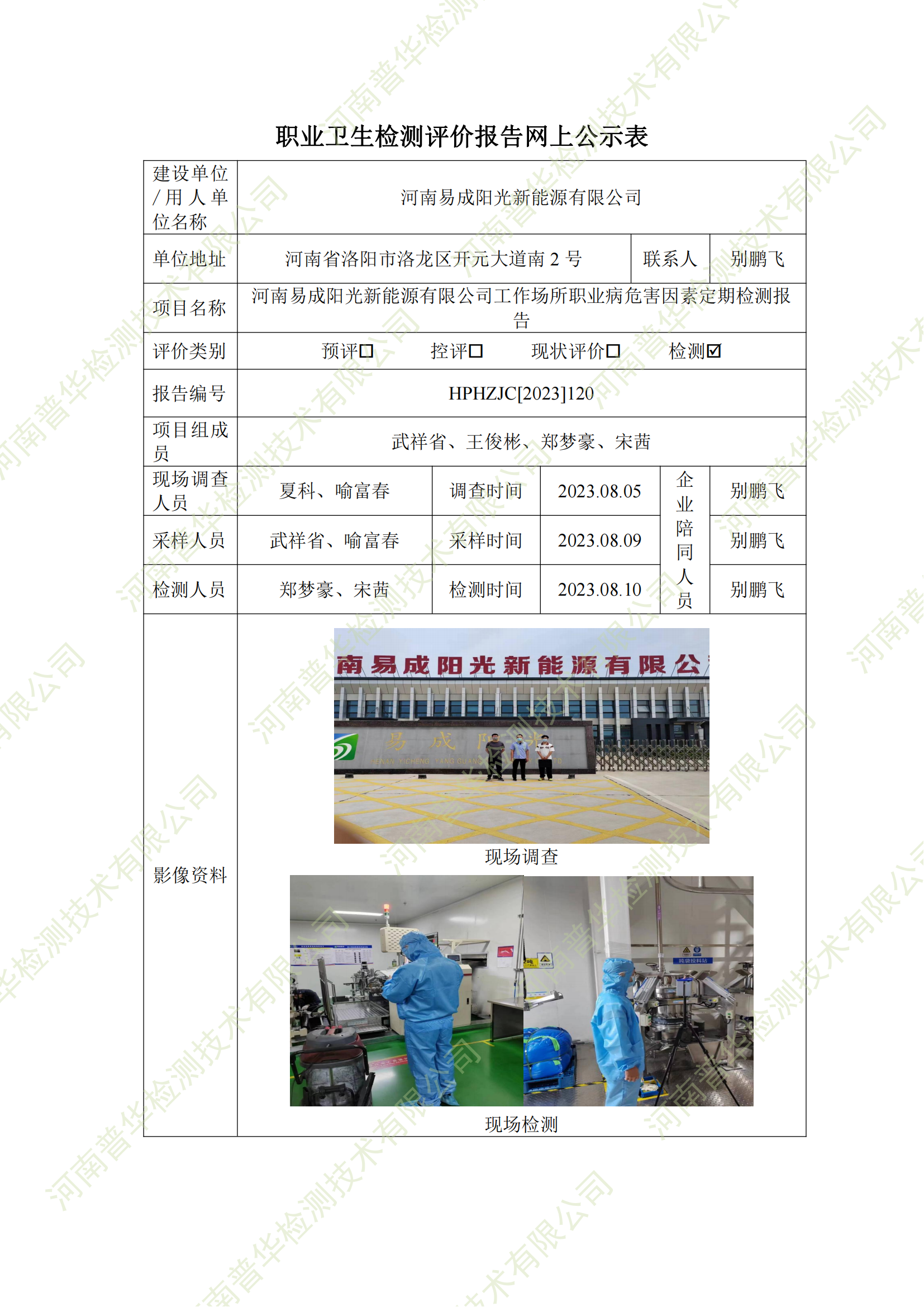 河南易成陽光新能源有限公司工作場所職業(yè)病危害因素定期檢測 點擊次數(shù):1023 次