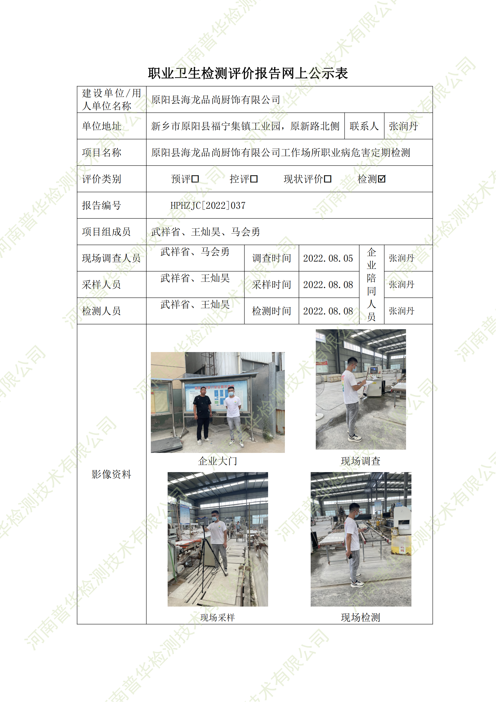 原陽(yáng)縣海龍品尚廚飾有限公司工作場(chǎng)所職業(yè)病危害定期檢測(cè) 點(diǎn)擊次數(shù):1087 次