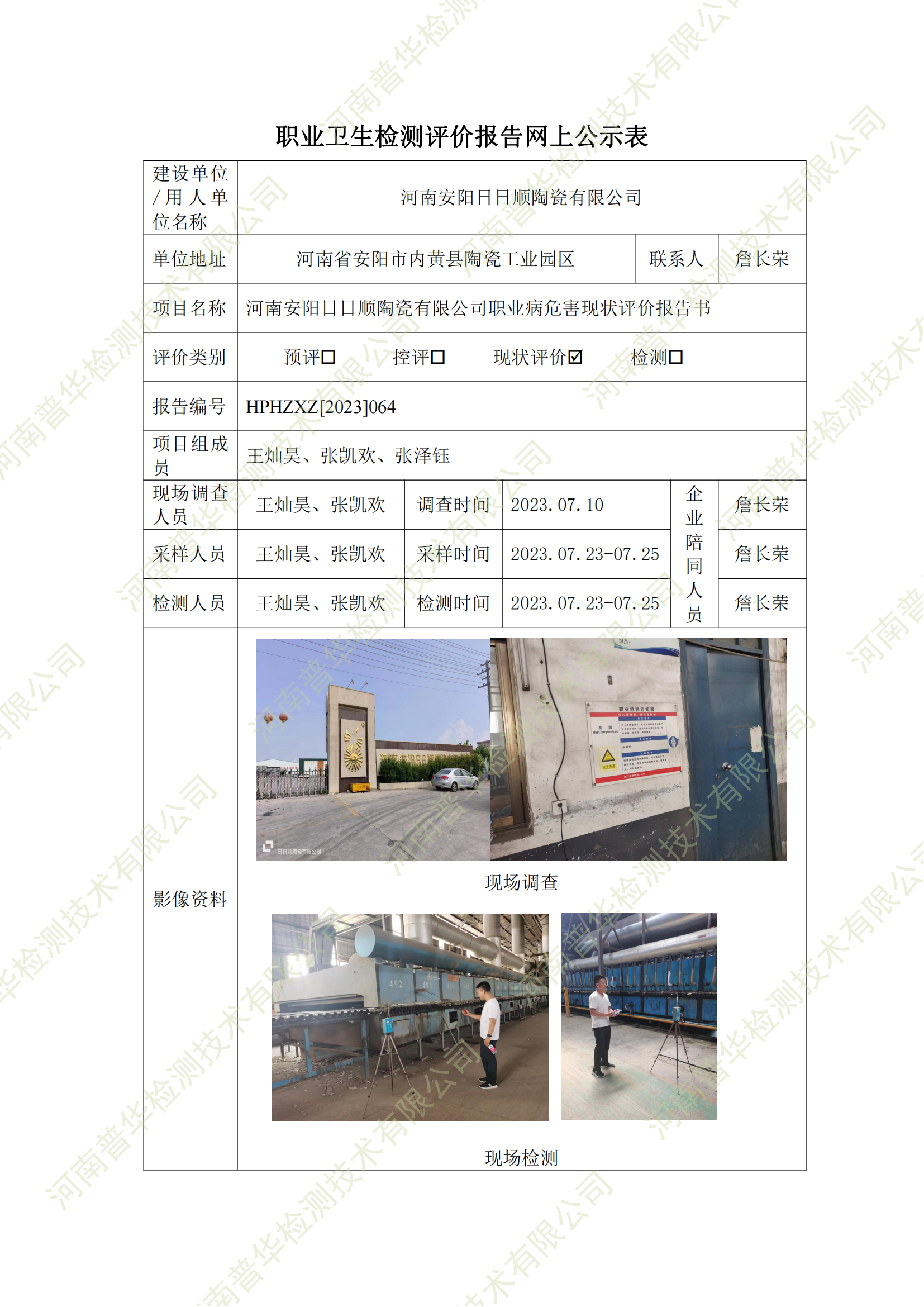 河南安陽(yáng)日日順陶瓷有限公司職業(yè)病危害現(xiàn)狀評(píng)價(jià) 點(diǎn)擊次數(shù):1213 次