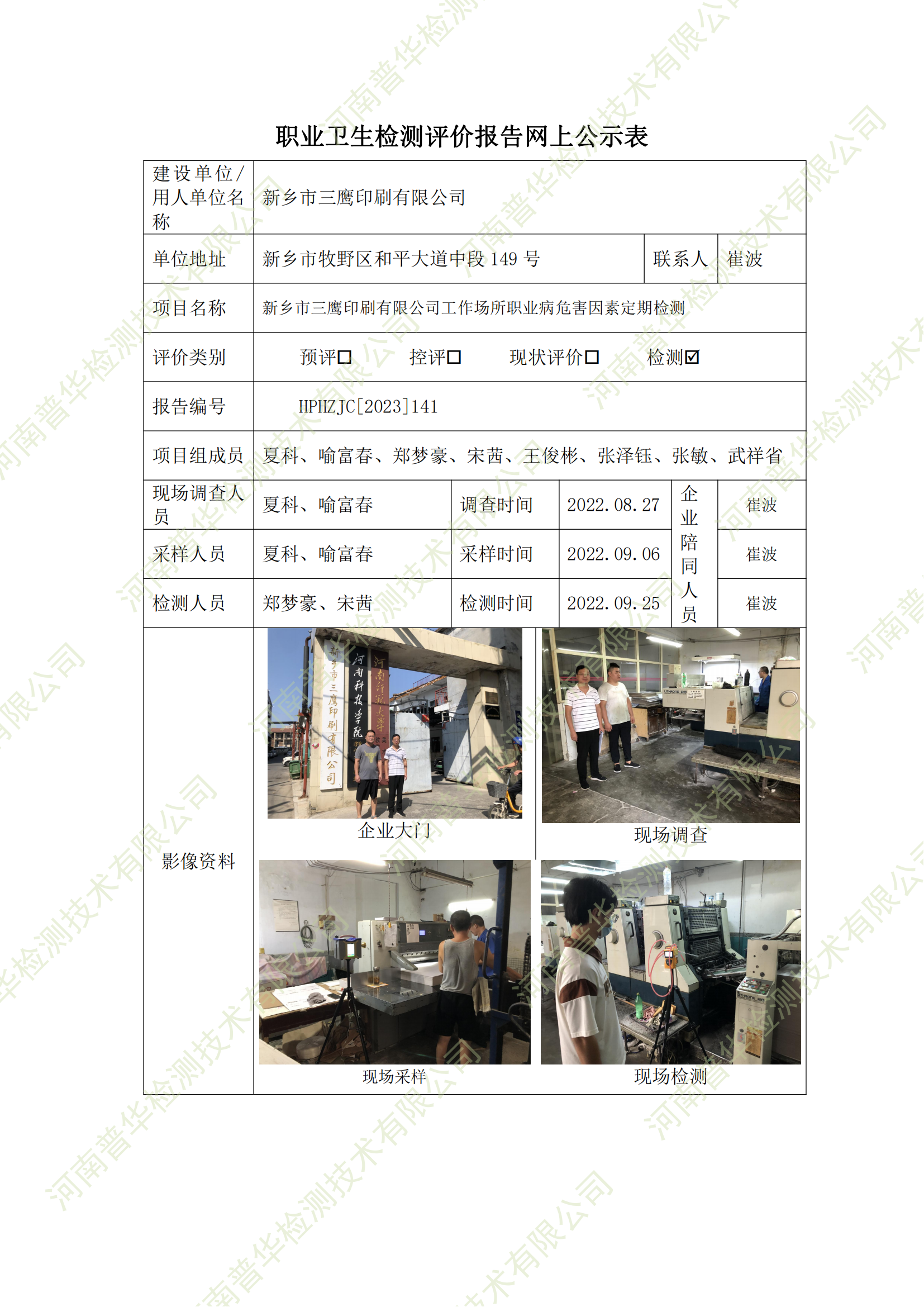 新鄉(xiāng)市三鷹印刷有限公司工作場所職業(yè)病危害因素定期檢測 點擊次數(shù):874 次