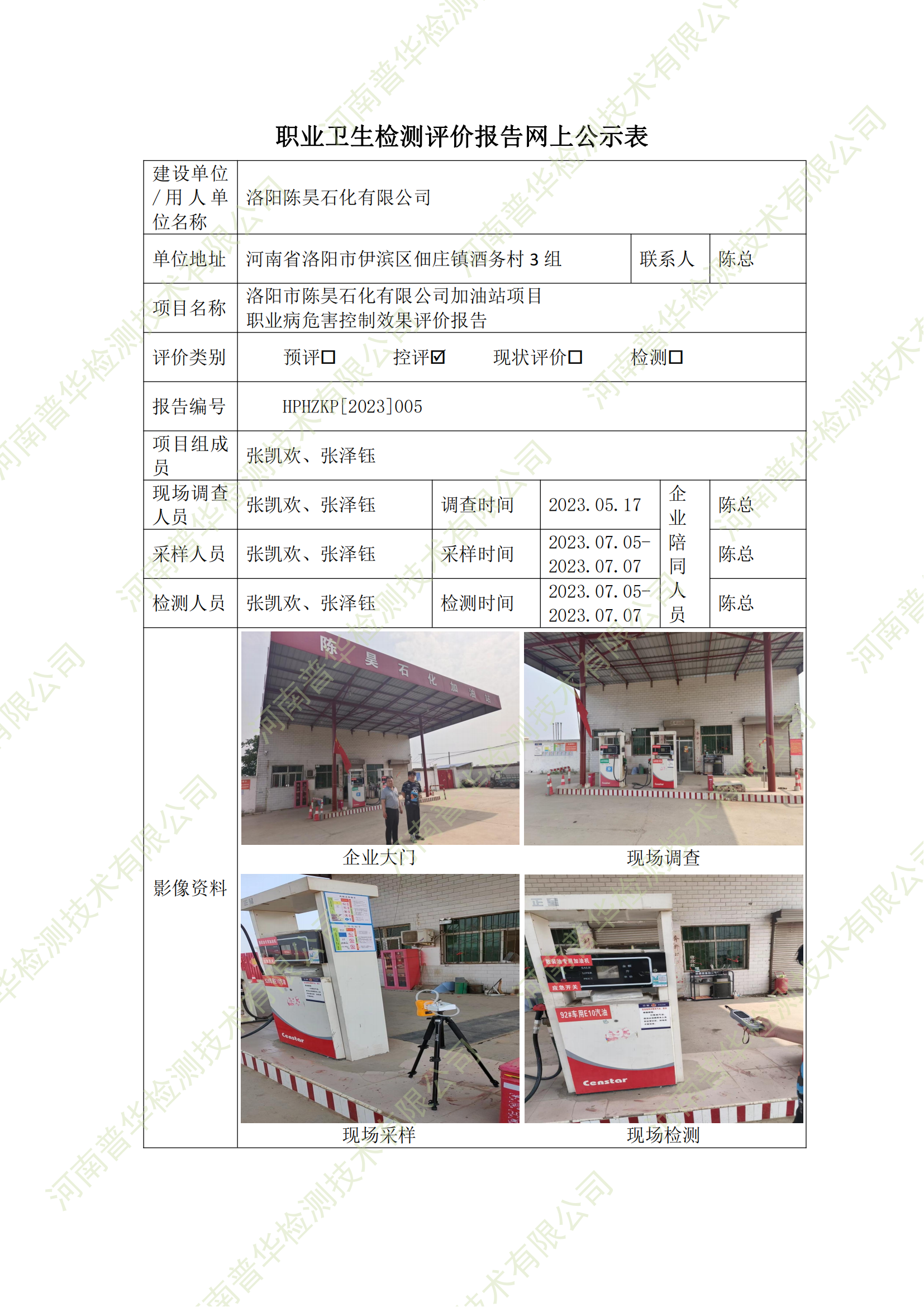 洛陽市陳昊石化有限公司加油站項目 職業(yè)病危害控制效果評價 點擊次數(shù):886 次