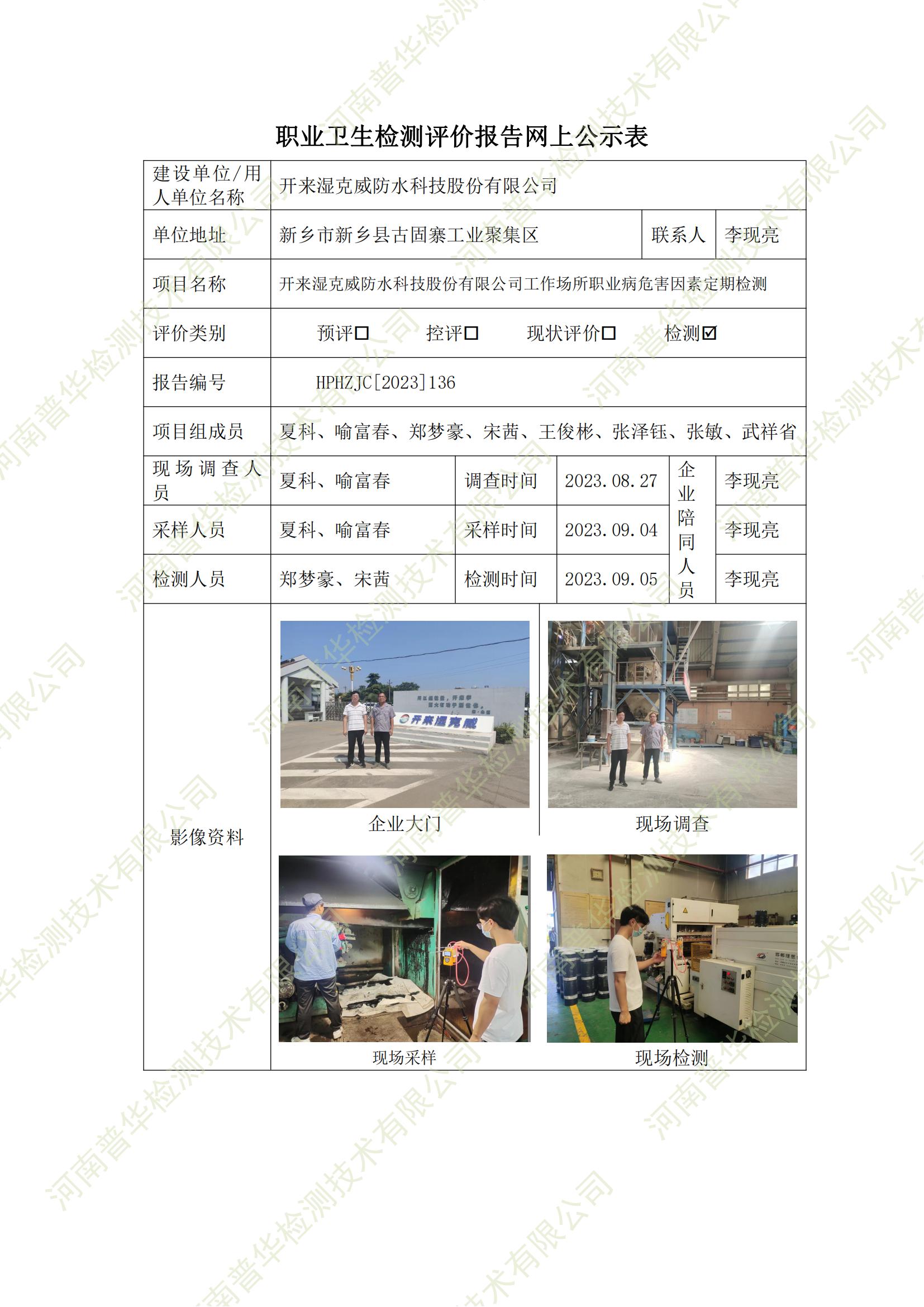 開來濕克威防水科技股份有限公司工作場所職業(yè)病危害因素定期檢測 點(diǎn)擊次數(shù):1071 次