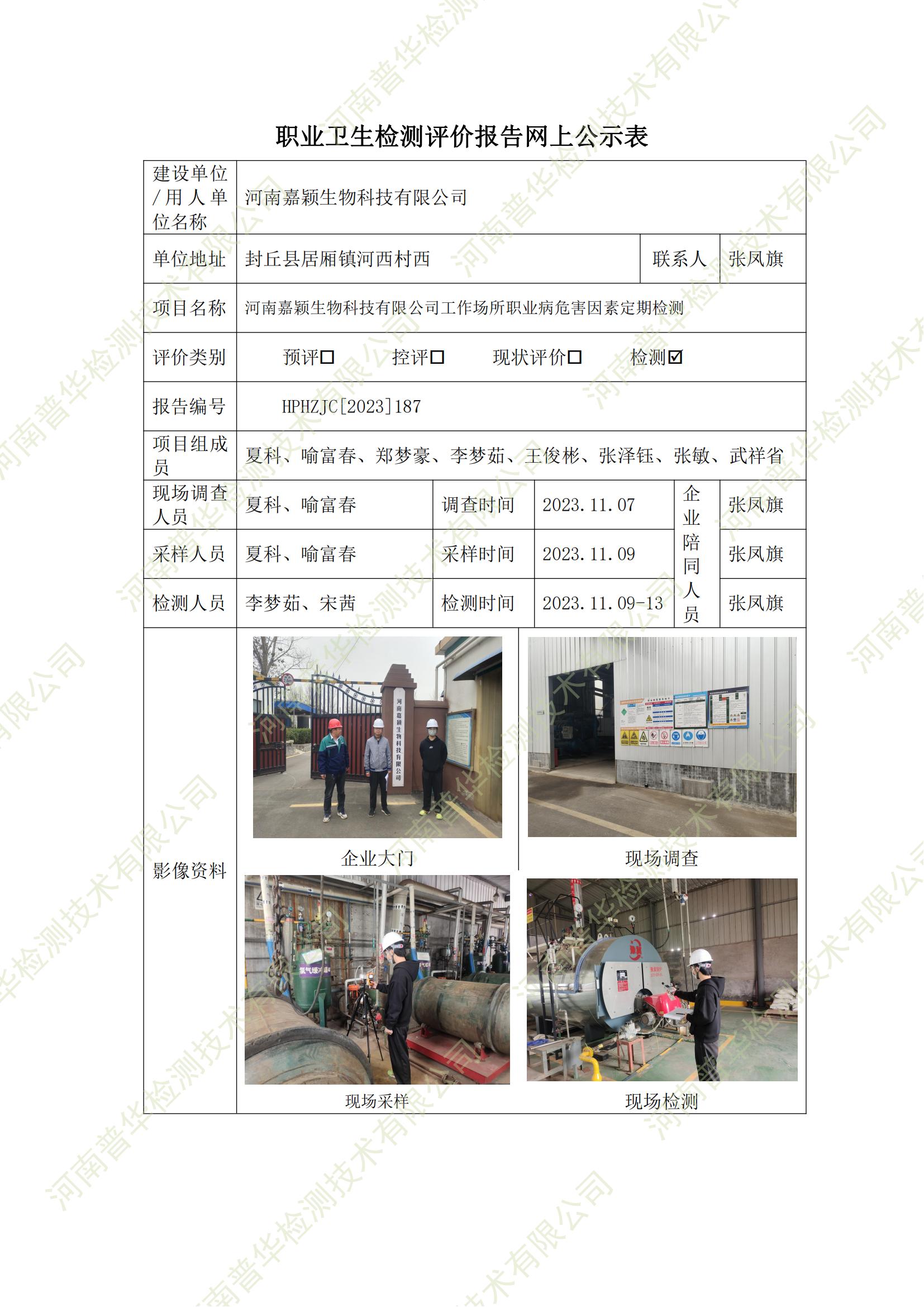 河南嘉穎生物科技有限公司工作場(chǎng)所職業(yè)病危害因素定期檢測(cè) 點(diǎn)擊次數(shù):1132 次