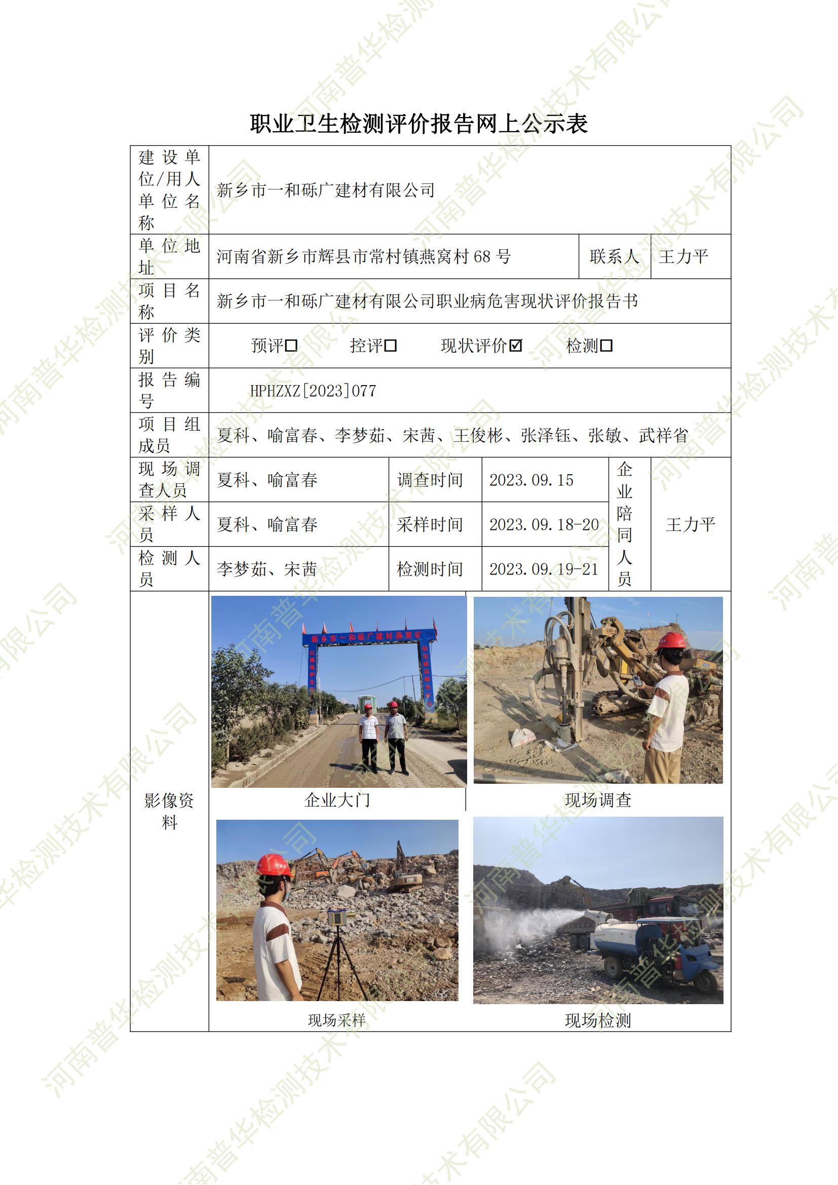新鄉(xiāng)市一和礫廣建材有限公司職業(yè)病危害現(xiàn)狀評(píng)價(jià) 點(diǎn)擊次數(shù):946 次