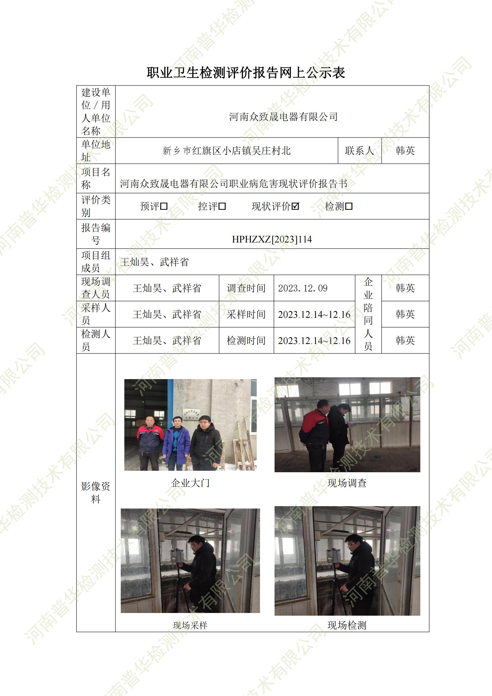 河南眾致晟電器有限公司職業(yè)病危害現(xiàn)狀評(píng)價(jià) 點(diǎn)擊次數(shù):931 次