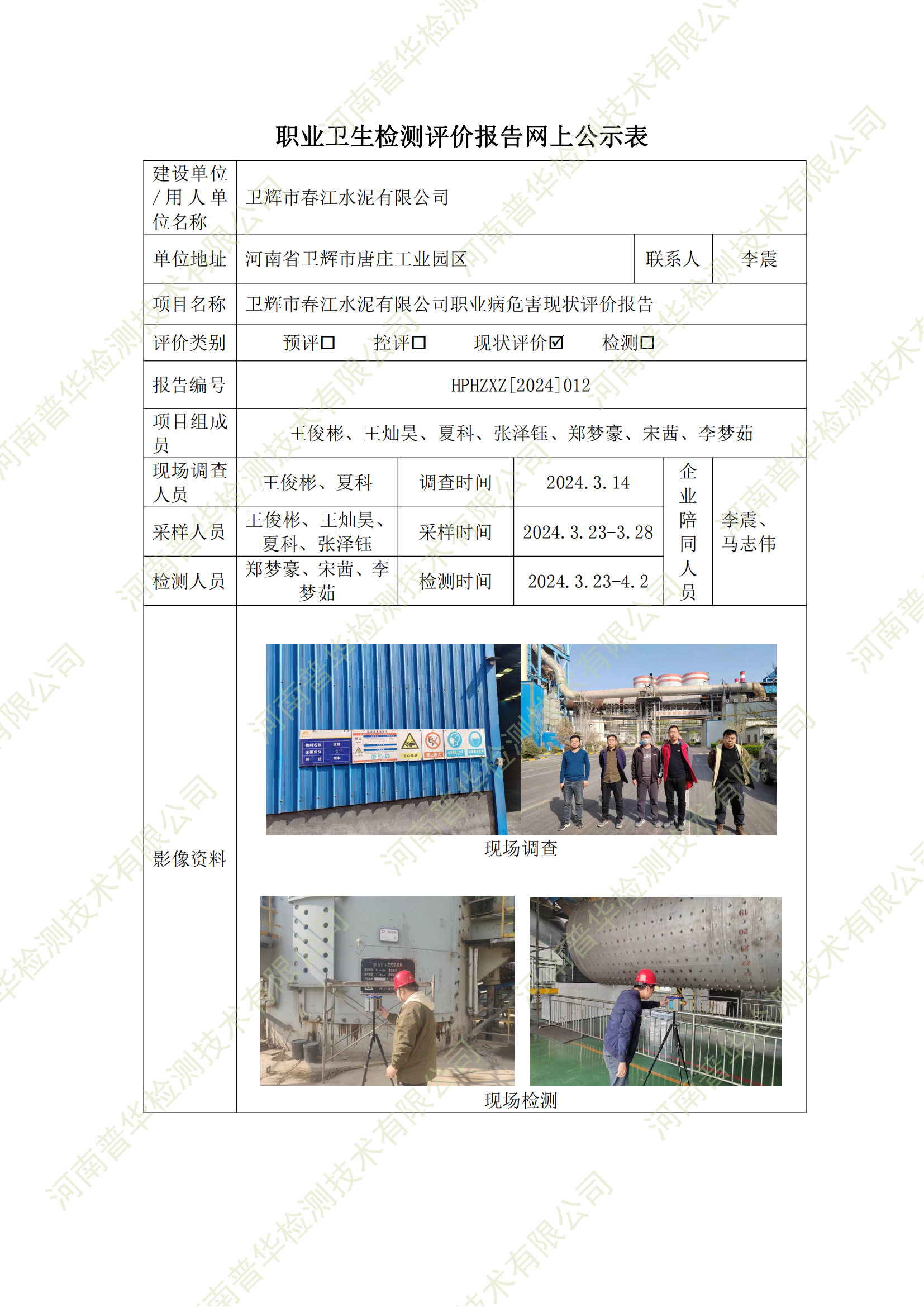 衛(wèi)輝市春江水泥有限公司職業(yè)病危害現(xiàn)狀評價 點擊次數(shù):765 次