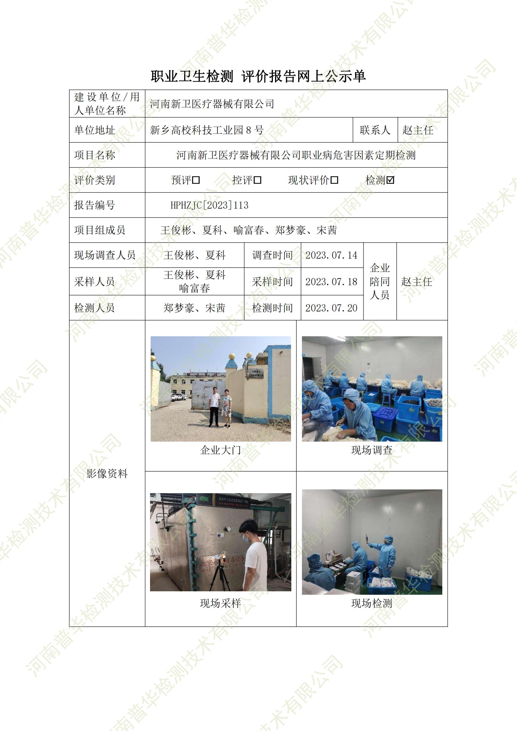 河南新衛(wèi)醫(yī)療器械有限公司職業(yè)病危害因素定期檢測 點擊次數(shù):889 次