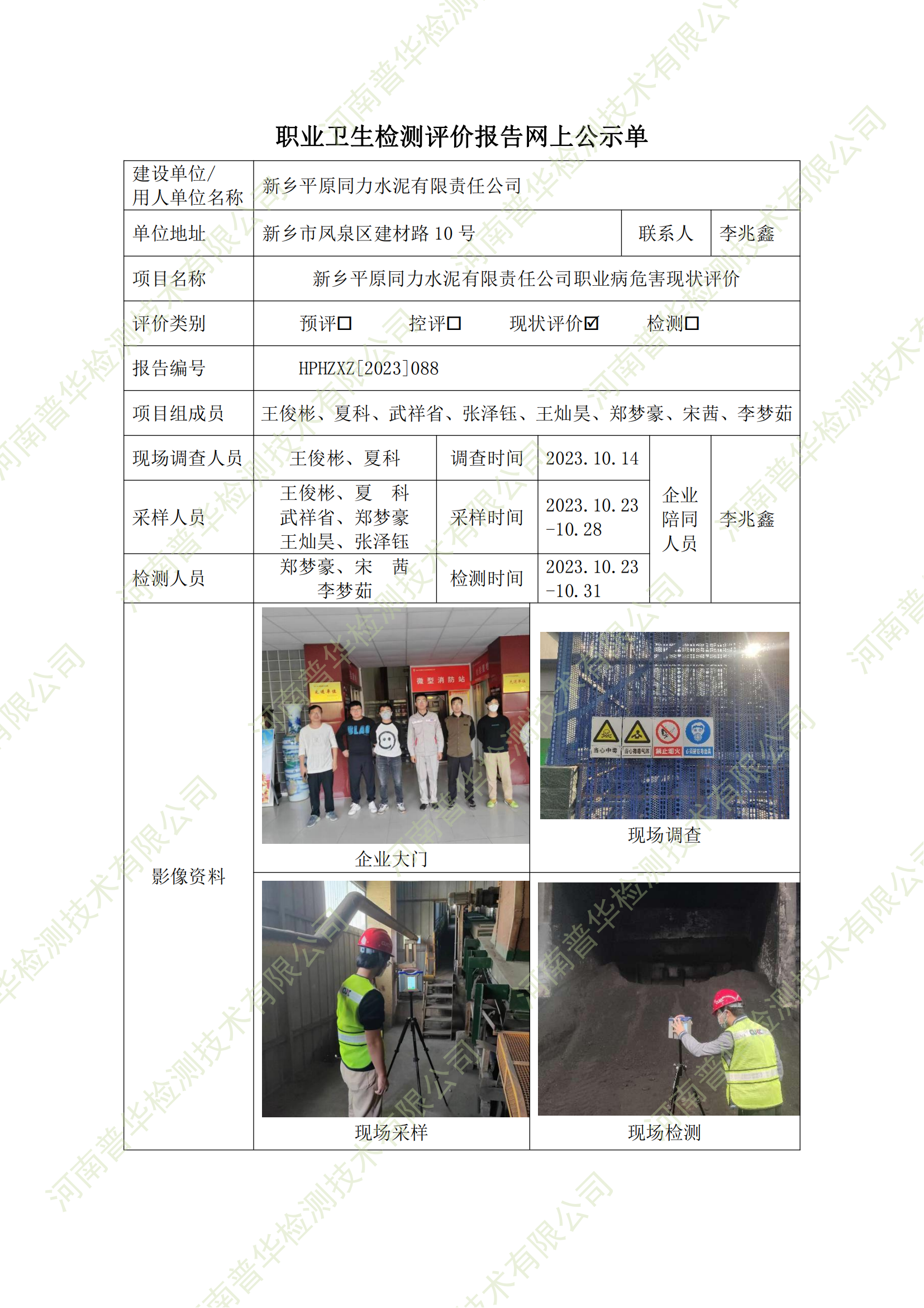 新鄉(xiāng)平原同力水泥有限責(zé)任公司職業(yè)病危害現(xiàn)狀評(píng)價(jià) 點(diǎn)擊次數(shù):487 次
