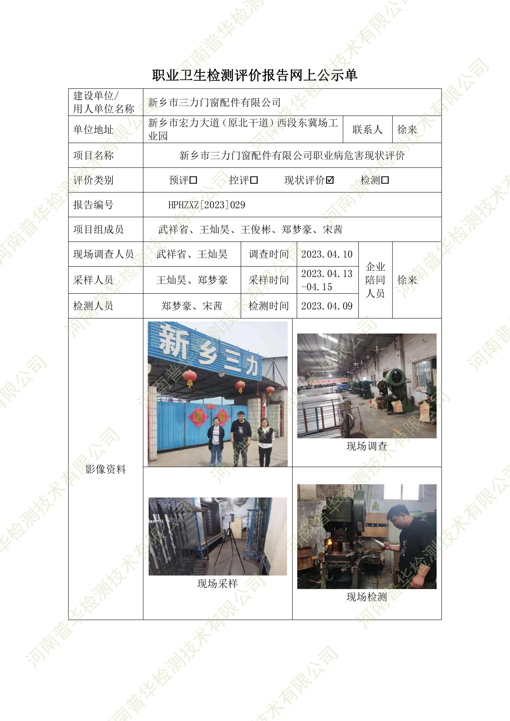 新鄉(xiāng)市三力門(mén)窗配件有限公司職業(yè)病危害現(xiàn)狀評(píng)價(jià) 點(diǎn)擊次數(shù):445 次