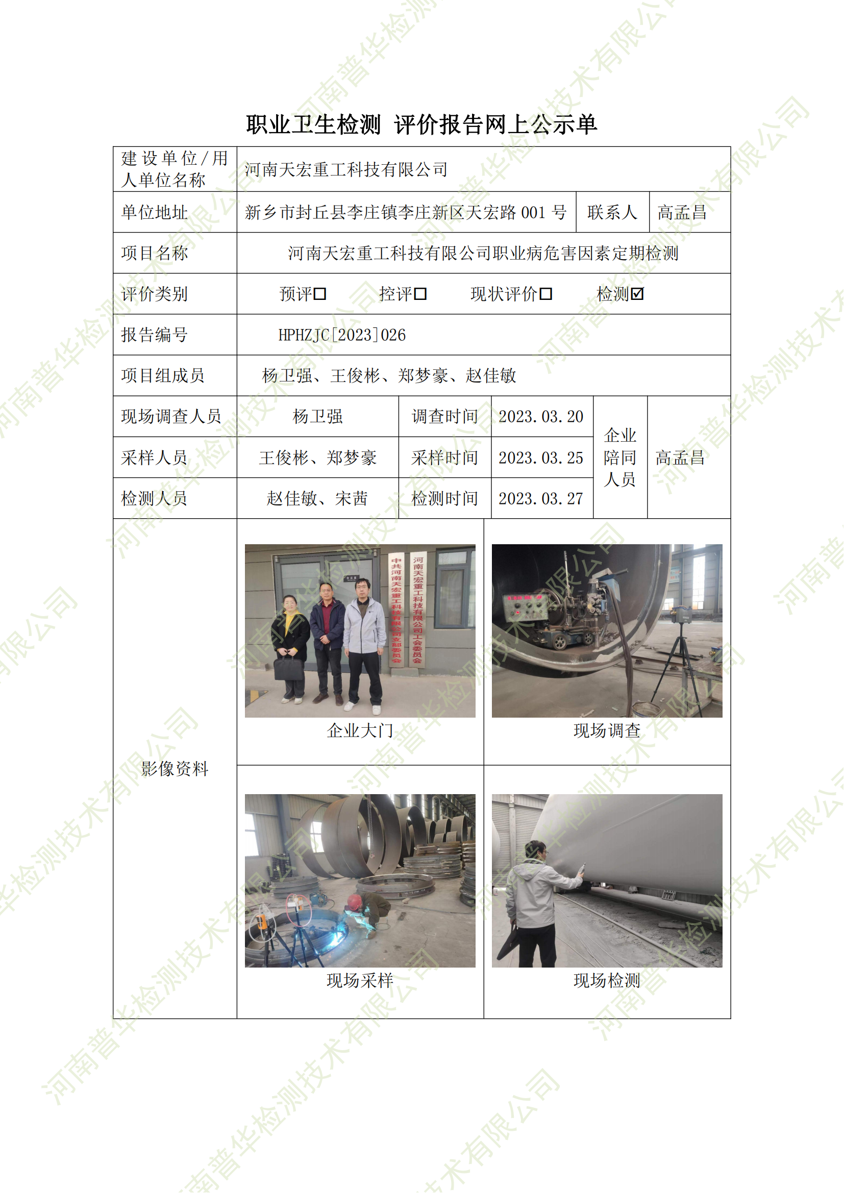 河南天宏重工科技有限公司職業(yè)病危害因素定期檢測(cè) 點(diǎn)擊次數(shù):888 次