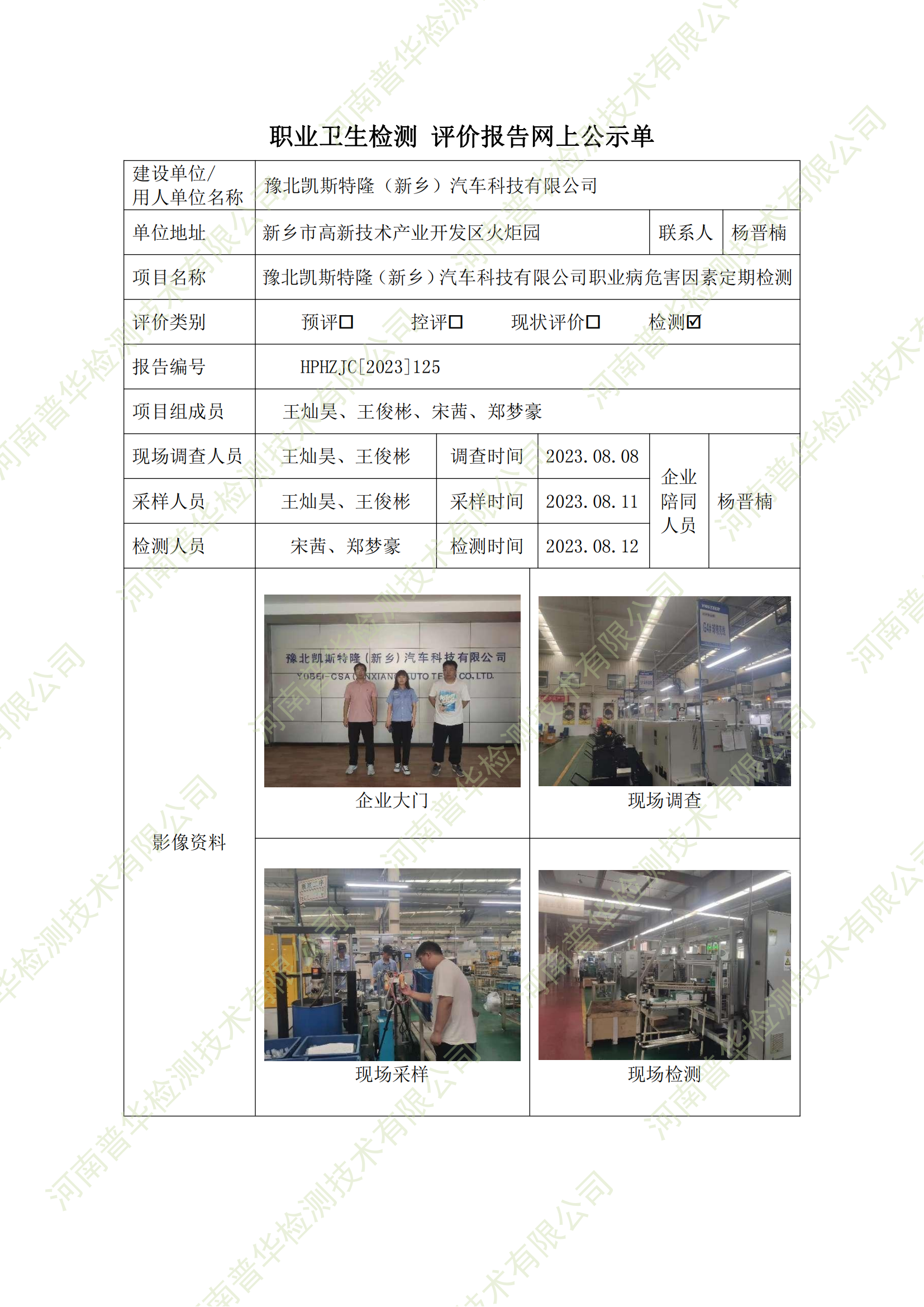 豫北凱斯特?。ㄐ锣l(xiāng))汽車科技有限公司職業(yè)病危害因素定期檢測 點擊次數(shù):874 次