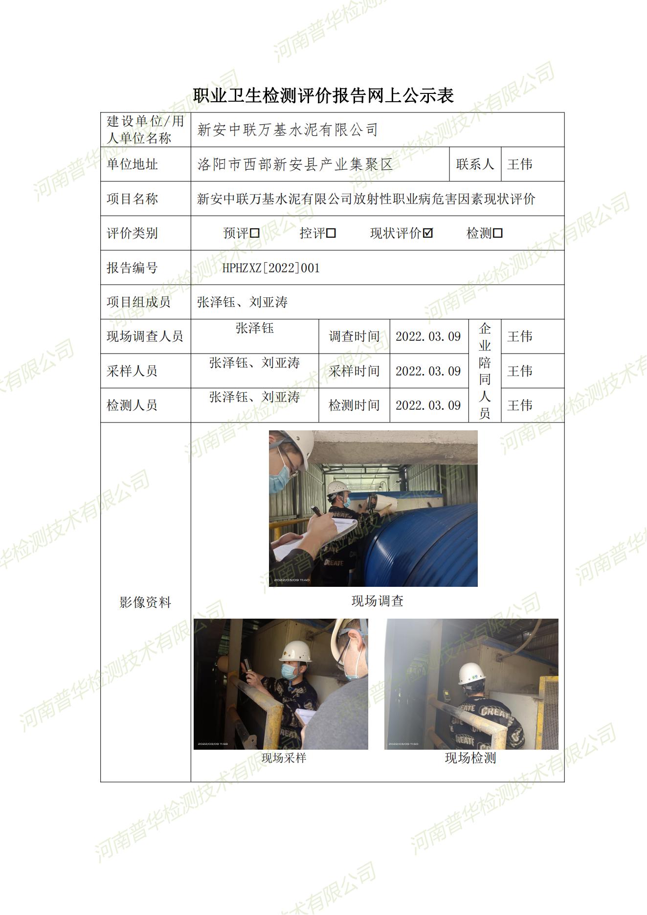 新安中聯(lián)萬基水泥有限公司放射性職業(yè)病危害因素現(xiàn)狀評價(jià) 點(diǎn)擊次數(shù):1698 次