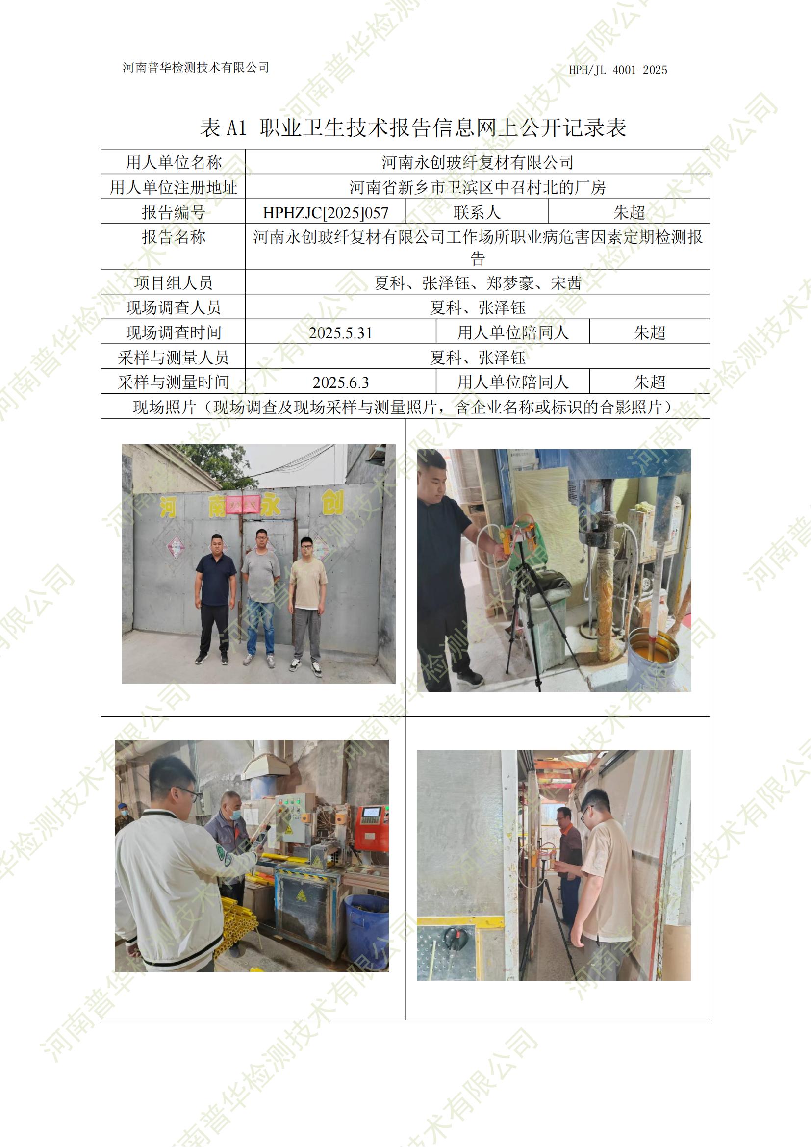 河南永創(chuàng)玻纖復(fù)材有限公司工作場(chǎng)所職業(yè)病危害因素定期檢測(cè) 點(diǎn)擊次數(shù):137 次
